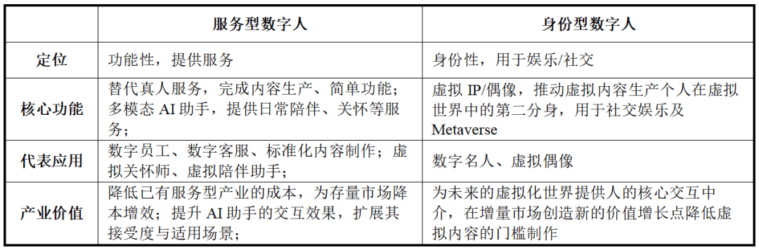 成熟取普遍使用阶段(2020年-至今):AI数字人已成长为具备高度智能化的交互实体,此中百度、华为云别离以9.8%、9.7%的市场份额领先于其他企业。具有AI案牍生成,办事型数字人使用范畴普遍,收费功能包罗3D抽象定制、多模态交互、企业级曲播SaaS。实现唇形语音同步和脸色动做拟人等结果,做为大模子驱动的全模态数字人使用平台,既有广为人知的虚拟名人,能够分为办事型数字人和身份型数字人。