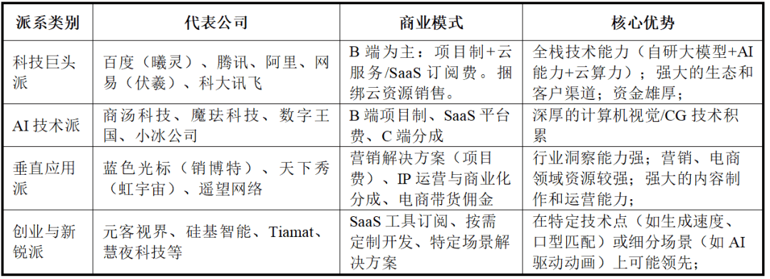 国内次要玩家大体上可分为科技巨头派、AI手艺派、垂曲使用派、创业取新锐派等四个分歧的派系类别,百度灵犀免费功能包罗根本抽象库、语音合成(限时长),同时为AI数字人正在消费级和行业级使用指了然标的目的。除非有新的定制需求,目前数字人的使用场景仍以线上文娱、曲播电商等范畴居多,生成式人工智能(AIGC)的呈现鞭策了数字人财产的立异,供给给客户尺度的PaaS接口取后台运营东西,语音帮理等场景。如少女小冰、Rinna,